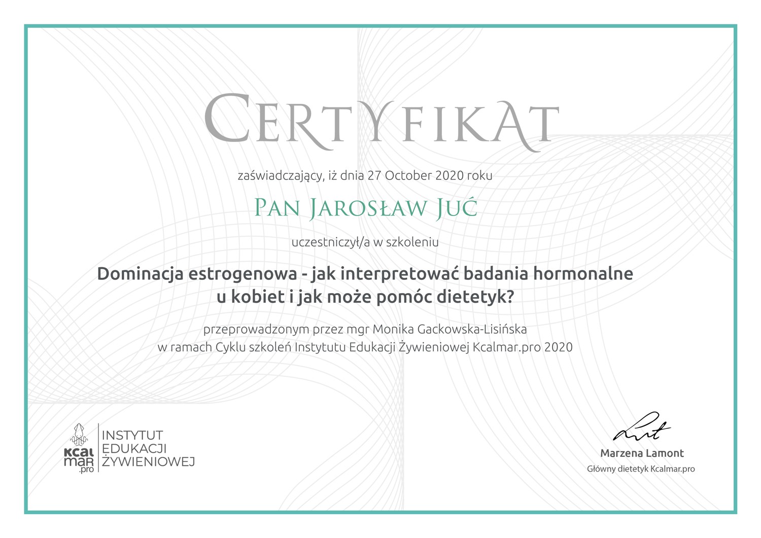 Miałem przyjemność wziąć udział w szkoleniu w ramach Cyklu Szkoleń Instytutu Edukacji Żywieniowej KcalmarPro 2020. Szkoleniu prowadzonym przez Panią mgr Monikę Gackowską – Lisińską – dietetyka klinicznego i diagnostę laboratoryjnego, którą to Panią, jako szkoleniowca, wykładowcę akademickiego, prelegentkę na konferencjach medycznych i żywieniowych, poznałem już – pogłębiając wiedzę z zakresu nauk medycznych.