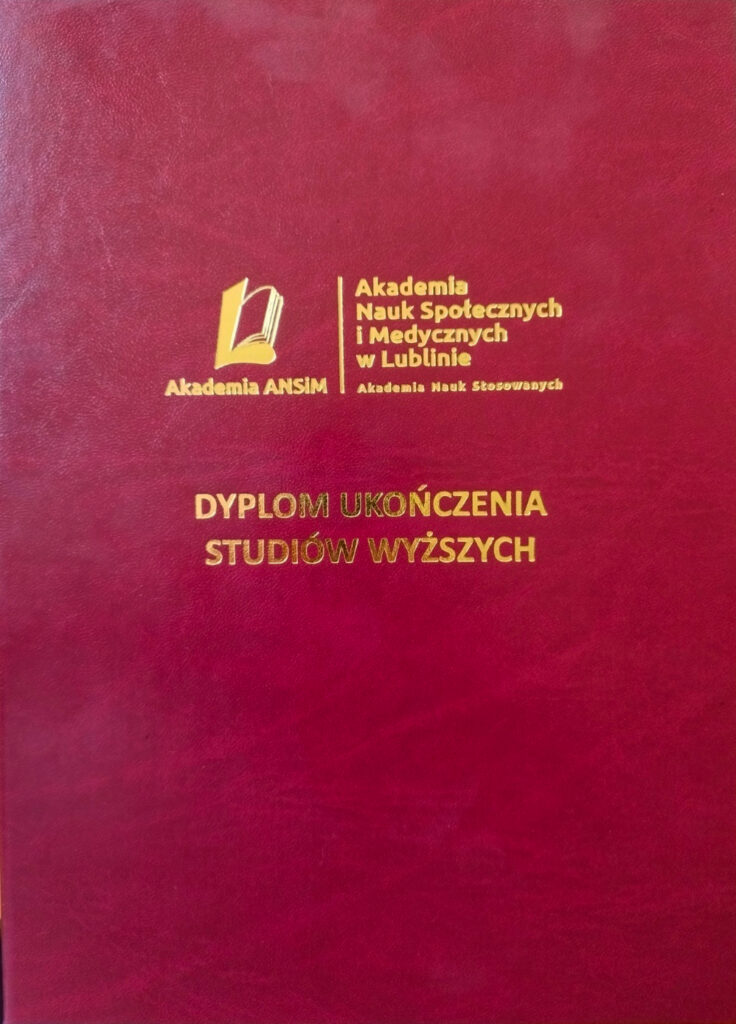 Studia ukończyłem z oceną „bardzo dobry”, uzyskując tytuł zawodowy „Dietetyk”. Tematem pracy dyplomowej była: „Ocena autorskiej mobilnej aplikacji dla cukrzyków na podstawie badań ankietowych”.