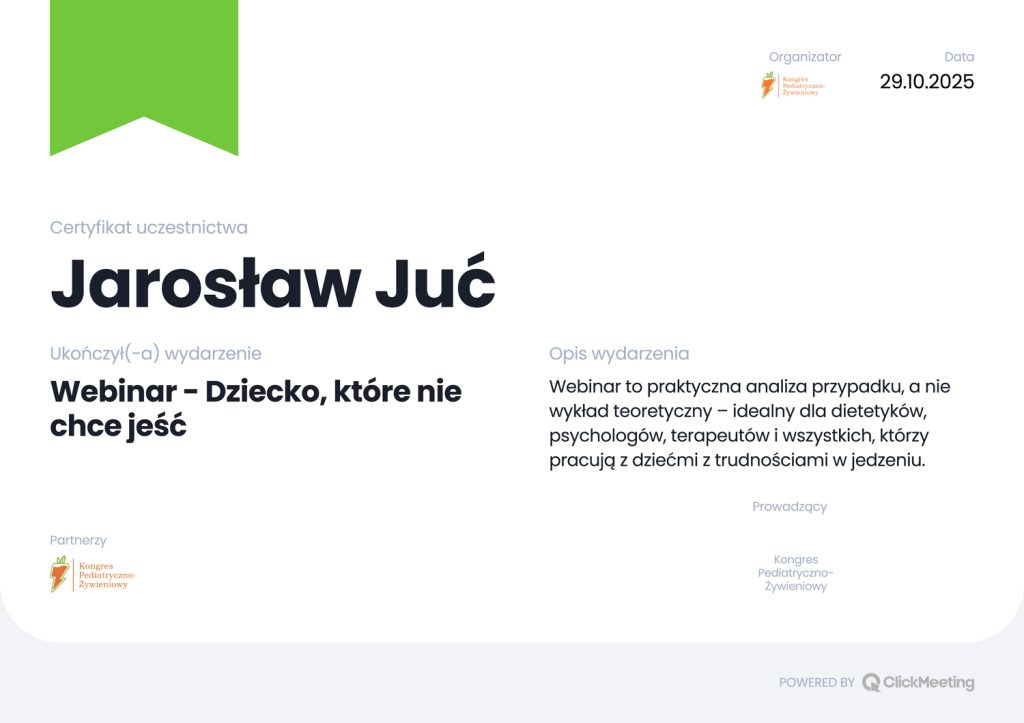 Powiększanie kompetencji specjalistów spotykających się w swojej pracy z pacjentami pediatrycznymi, którzy borykają się z różnorodnymi potrzebami w zakresie żywienia, trudnościami w karmieniu.