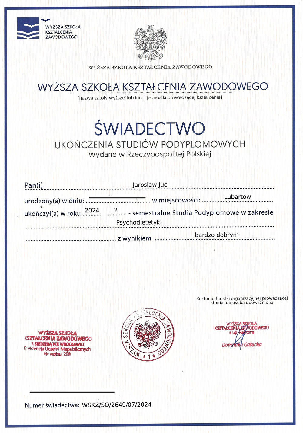 Studia podyplomowe – Wyższa Szkoła Kształcenia Zawodowego we Wrocławiu – Psychodietetyka