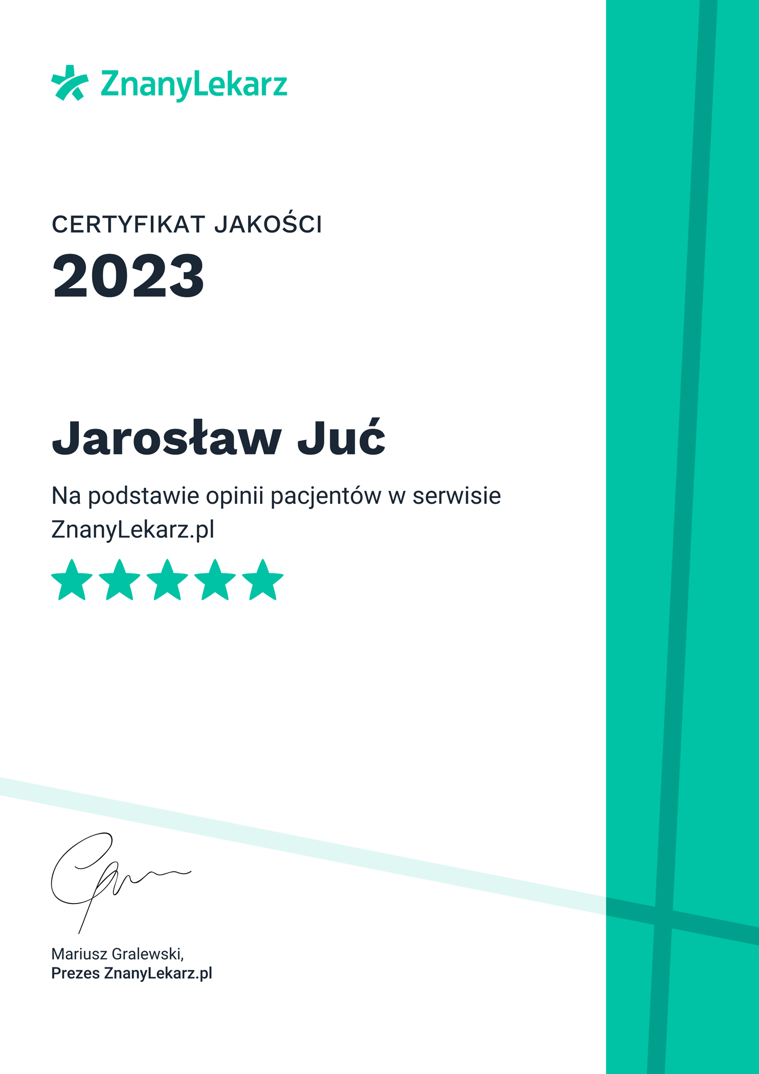 Certyfikat jakości za rok 2021 ZnanyLekarz